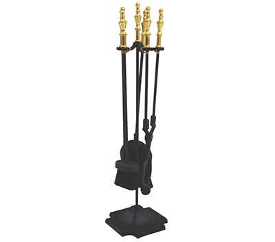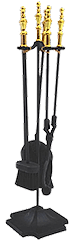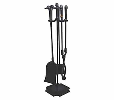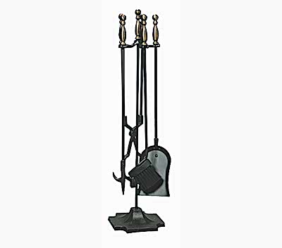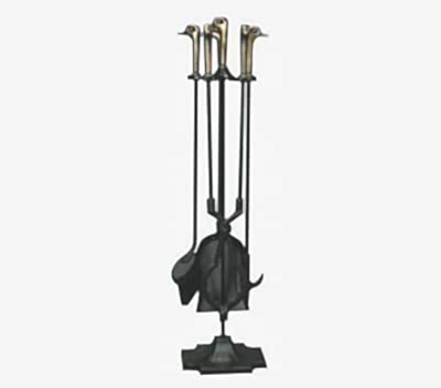 Şömine önünde dekoratif tamamlayıcı olarak kullanılan fonksiyonel maşa takımları
